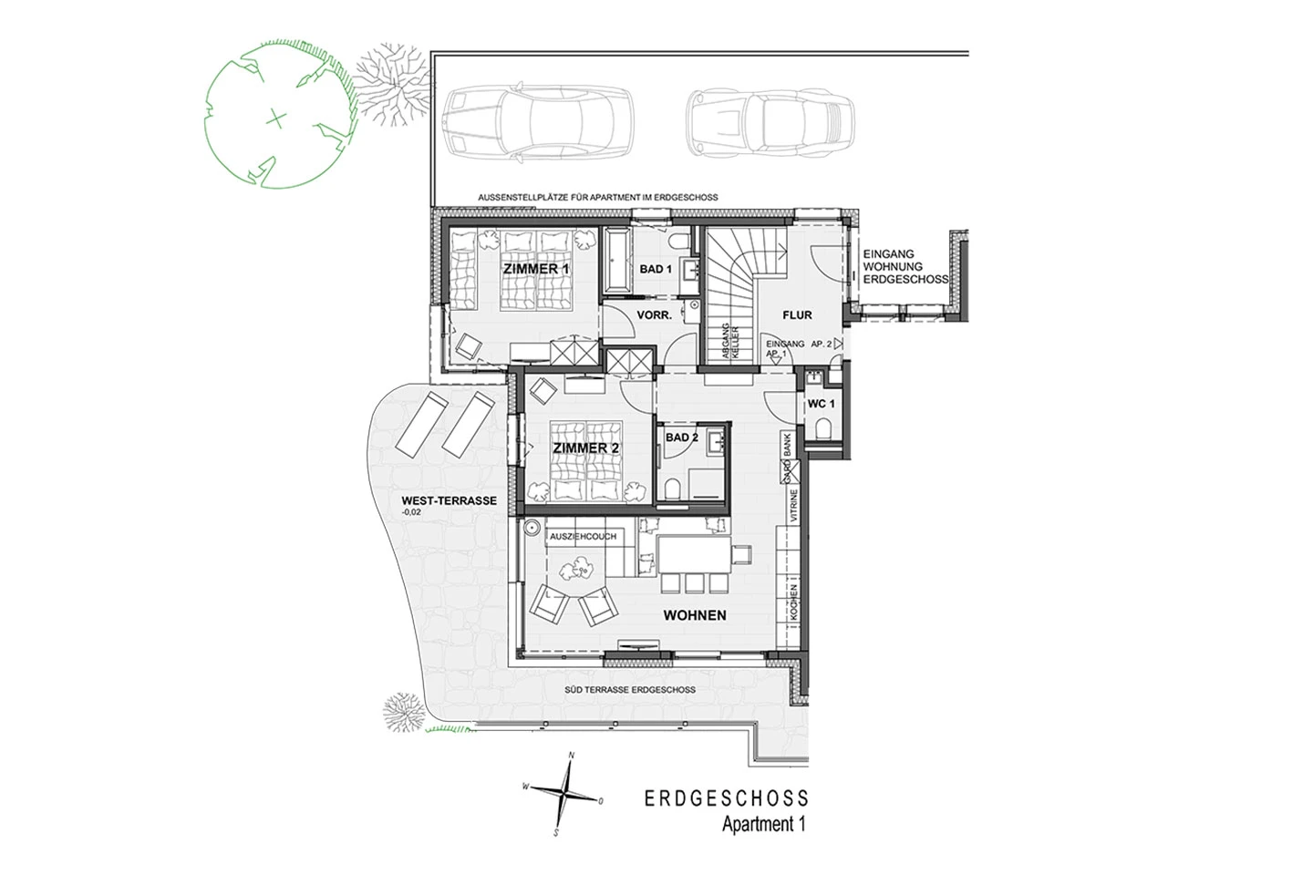 Das Appartement Bergkristall befindet sich im Erdgeschoß und verfügt über einen Koch-, Ess- und Wohnbereich, 2 Schlafzimmer mit Doppelbett, ein großes Bad mit Badewanne/WC, ein Bad mit Dusche/WC, getrenntes WC, große Terrasse und bietet insgesamt Platz für 4-6 Personen.